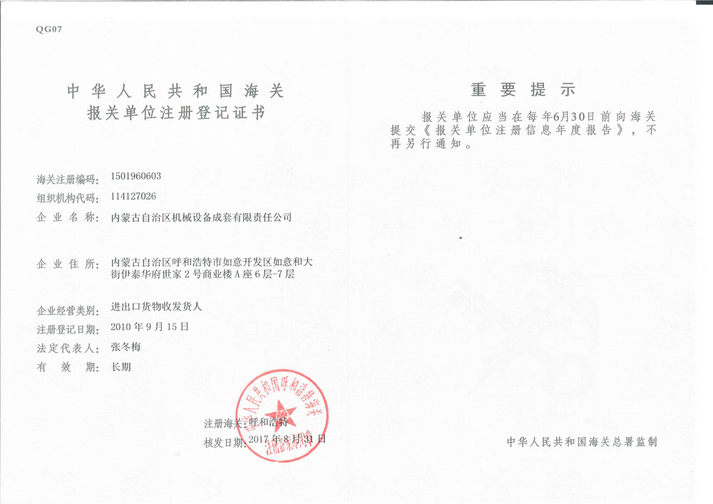 內蒙古自治區機械設備成套有限責任公司營業執照
